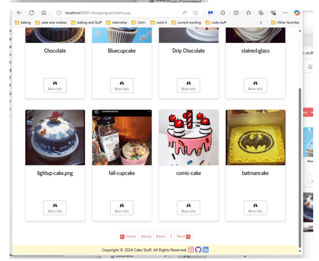 The portfolio section is equally impressive, demonstrating a wide range of web development projects. Each project is thoughtfully presented with detailed descriptions and visually appealing screenshots. The transition from tech to treats is smooth, creating a cohesive narrative that connects both crafts.